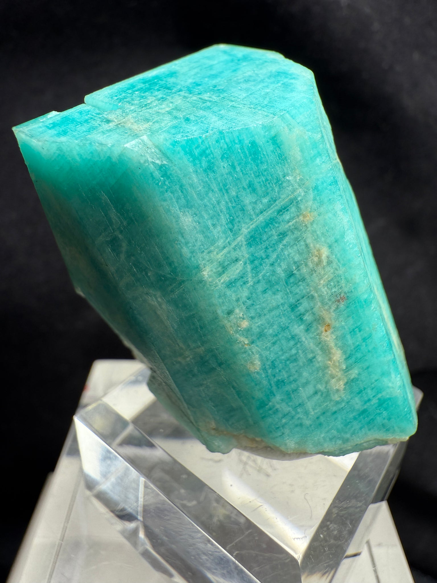 A classic specimen of turquoise-blue, well-terminated Amazonite crystals from Pikes Peak, Colorado. The crystals display excellent color and luster, a signature look of this iconic locality. 4.2 x 3.5 x 2.4 cm