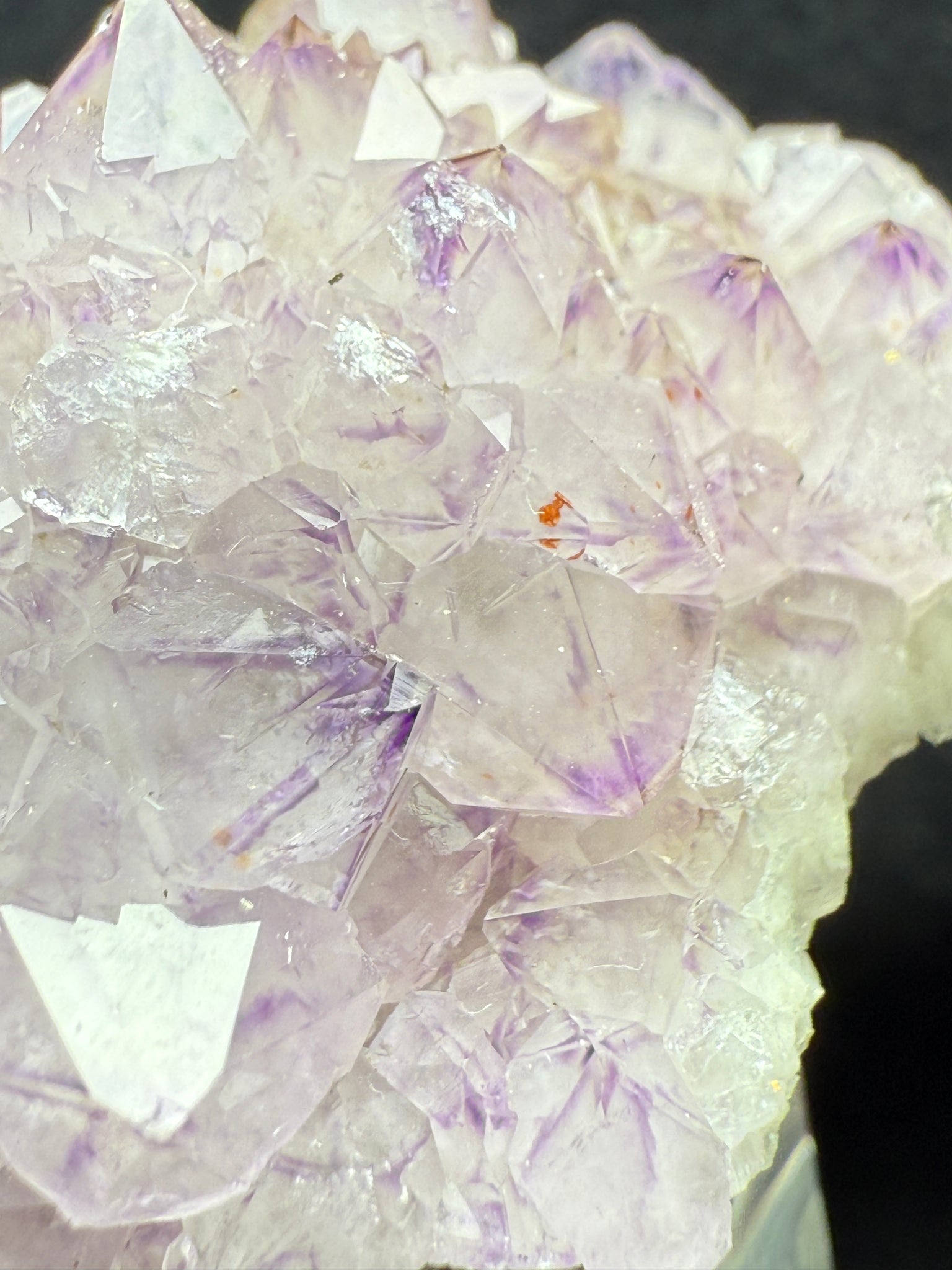 Light transparent purple Amethyst with star patterns phantoms, with traces of hematite inclusions. This jewel is from Moon Light mine, Thunder Bay, Ontario, Canada. 4.8 x 3.8 x 2.4 cm