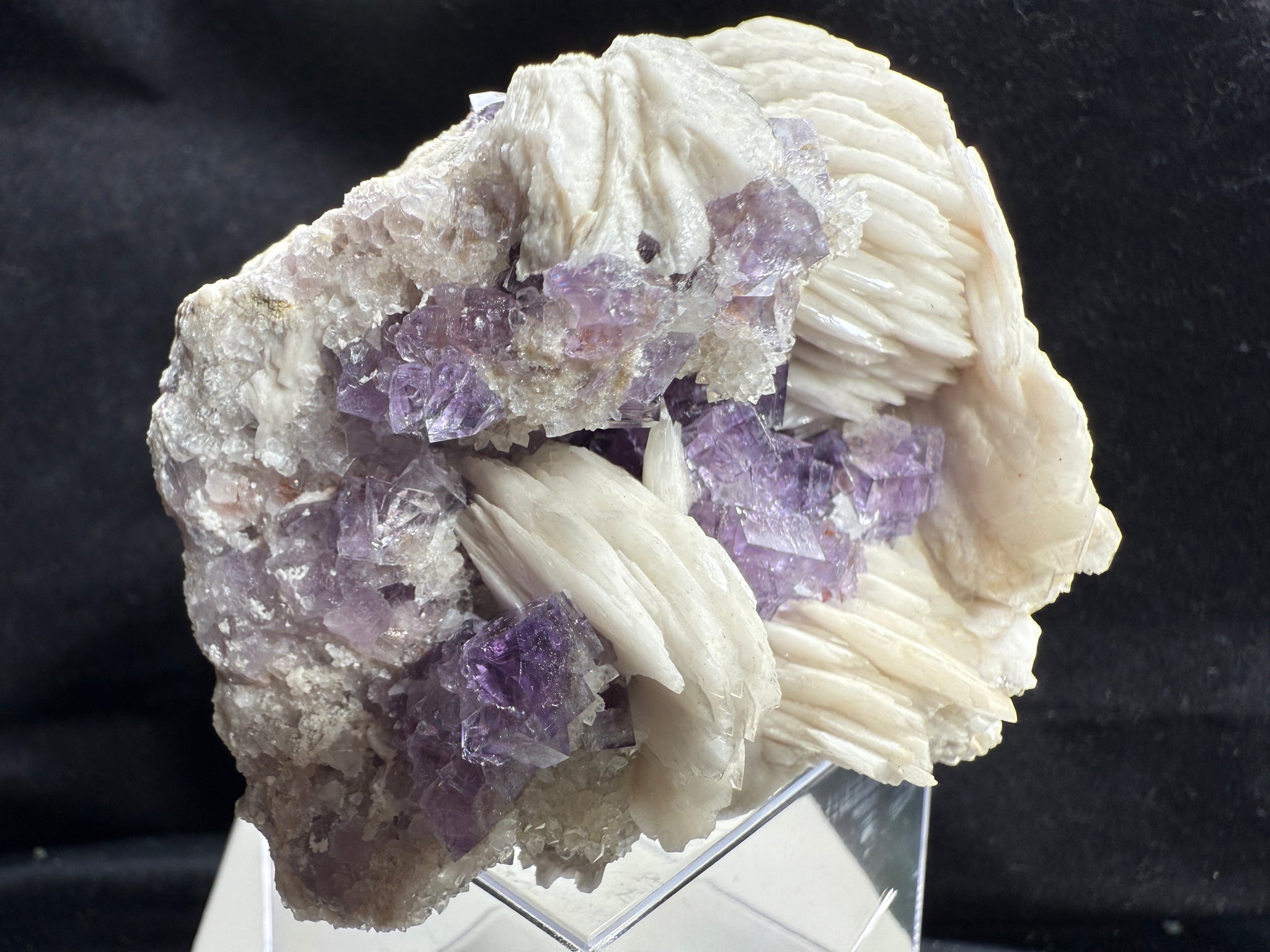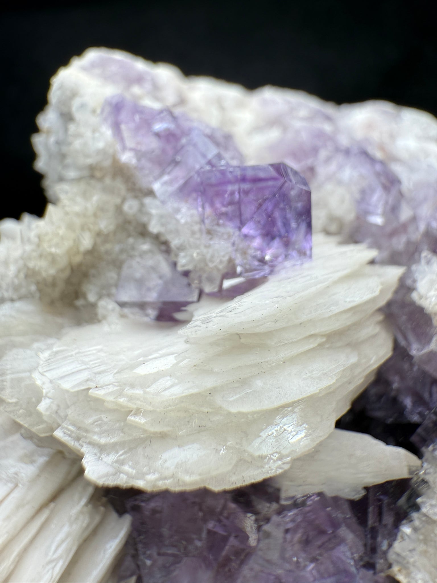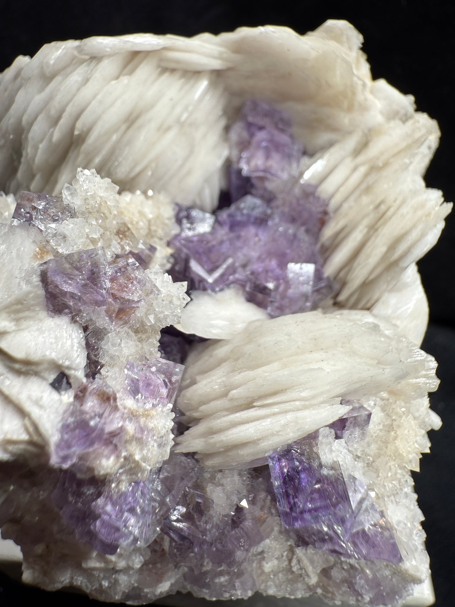 A wonderful specimen featuring lustrous white Barite blades beautifully associated with Fluorite and Quartz. Most of the Fluorite crystals show attractive color zoning, adding depth and contrast to the piece. A classic and highly aesthetic combination from the famous Berbes mining area, Asturias, Spain. 9.0 x 7.0 x 5.8 cm