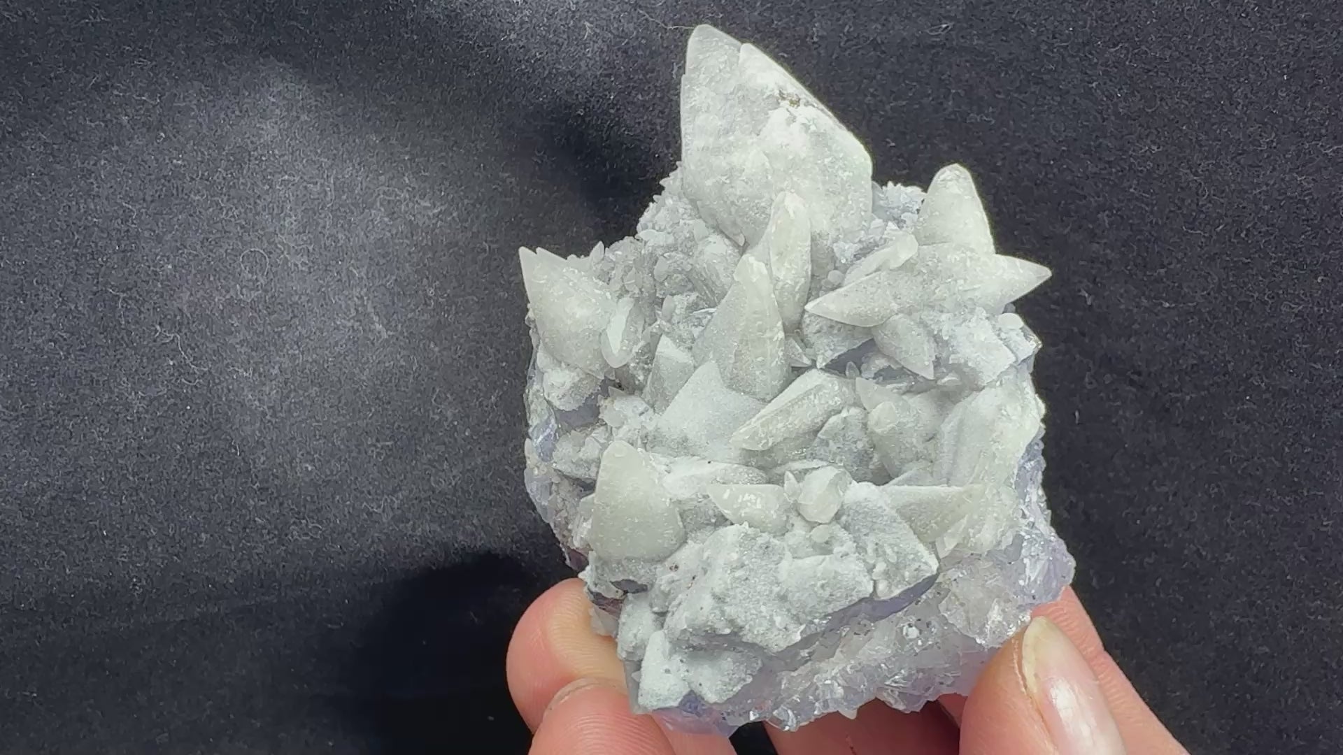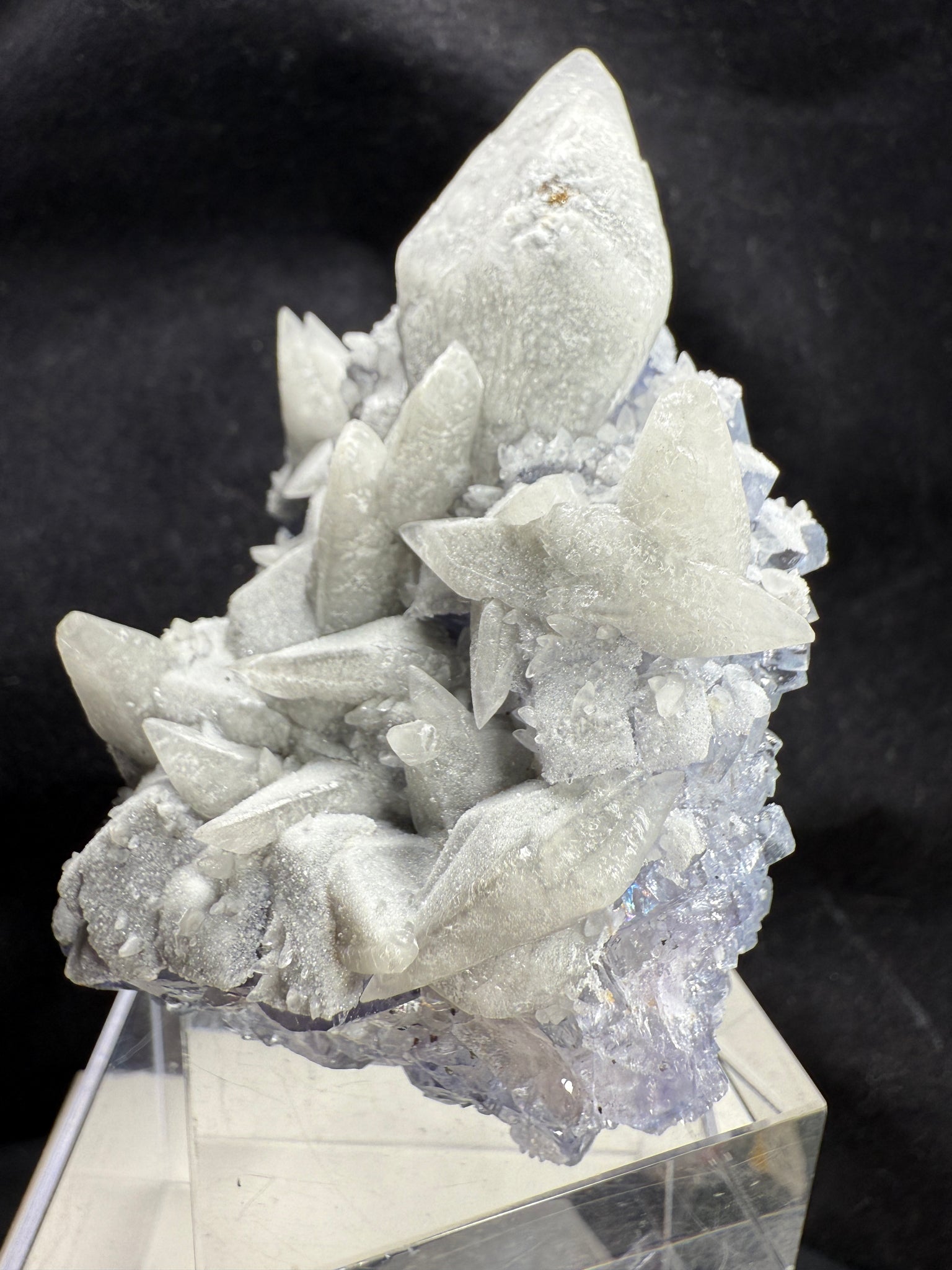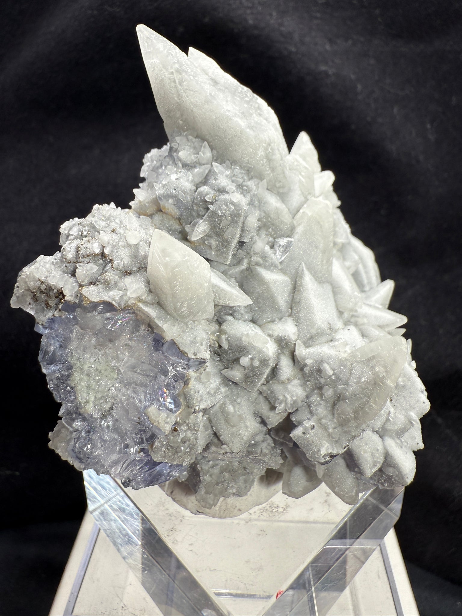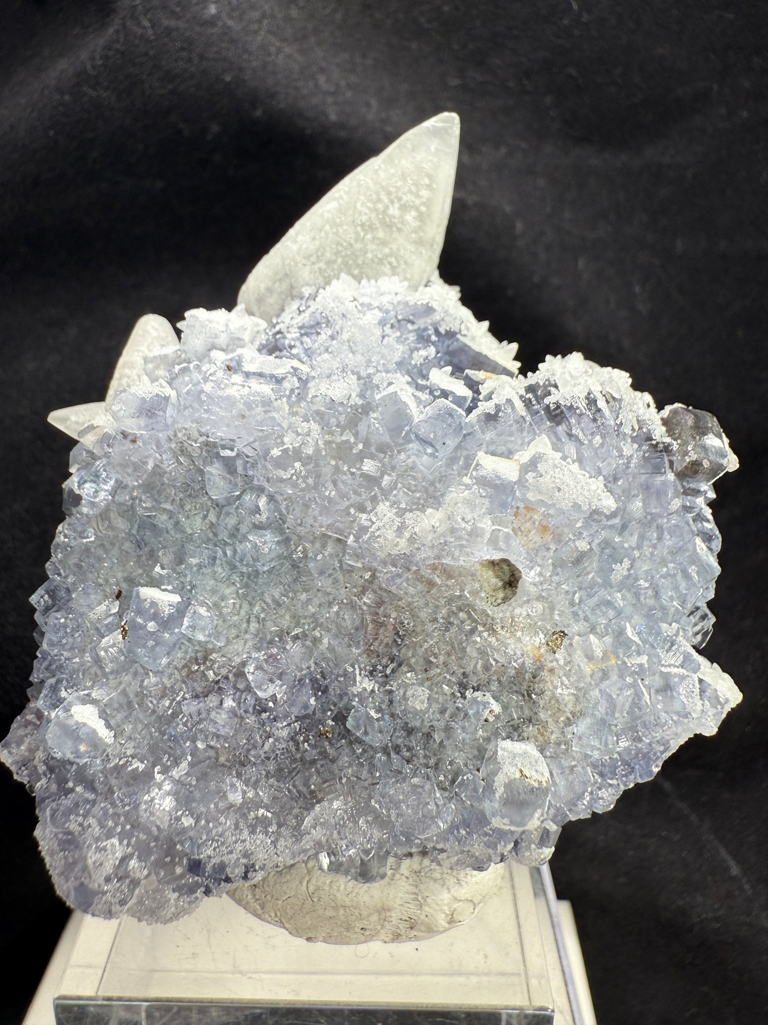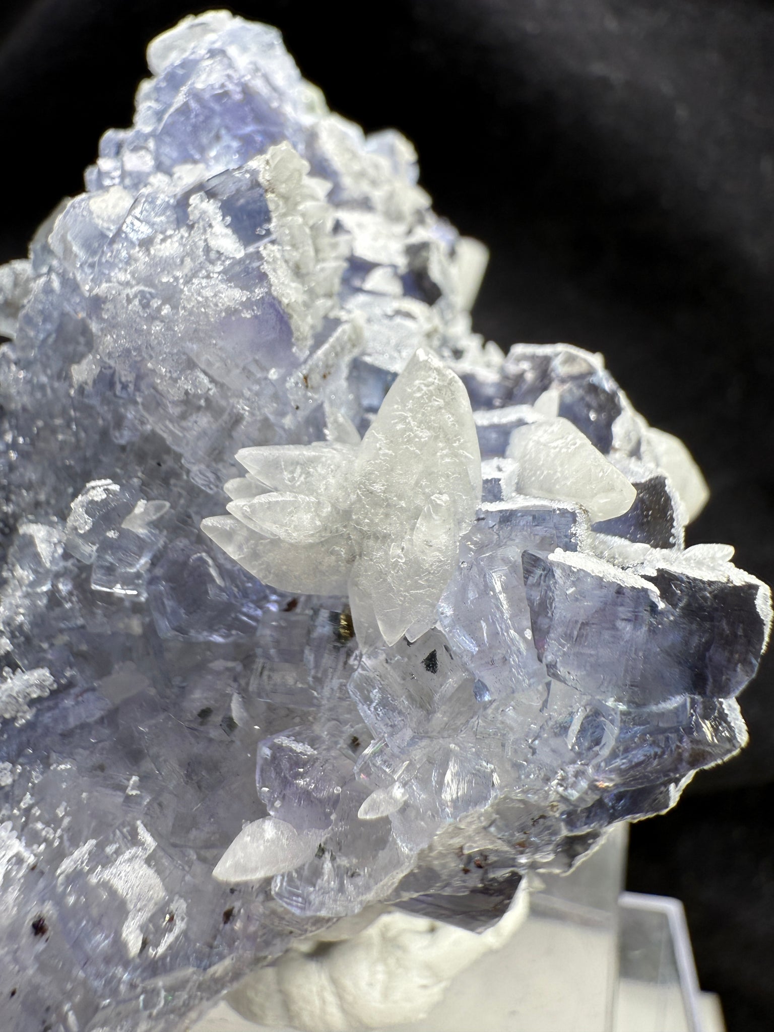 A superb floater specimen of Calcite with transparent purple Fluorite from the Emilio Mine, Asturias, Spain. The Calcite crystals are inclusion-rich, giving them a subtle grey hue that contrasts beautifully with the Fluorite’s gem-like clarity. Tiny, terminated Calcites are sprinkled across the surface, enhancing the texture and visual appeal. Highly aesthetic from all angles. 6.4 x 5.3 x 4.6 cm