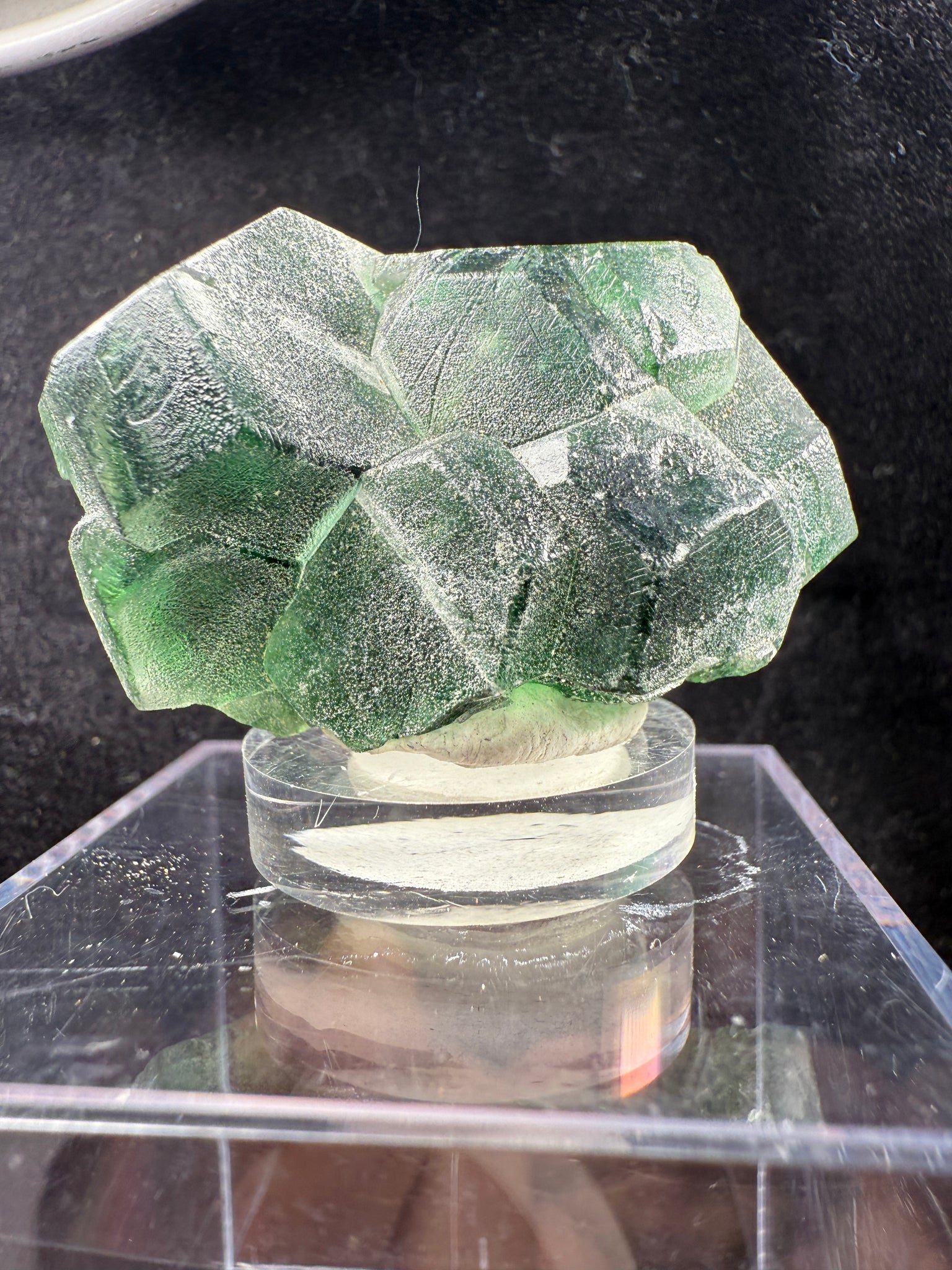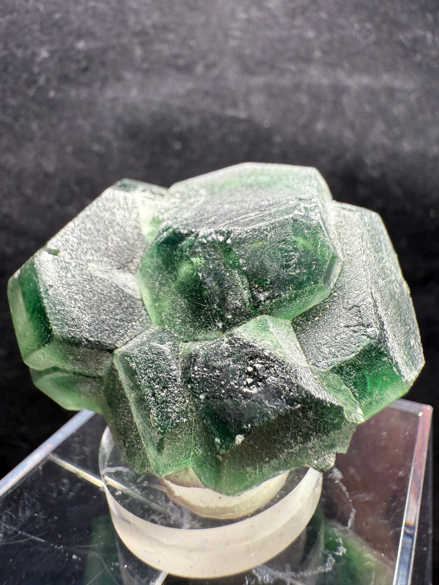 Gemmy green Fluorite crystal showing a distinctive cuboctahedral form, a classic and sought-after habit from the Okorusu Mine, Erongo Region, Namibia. There is an external fracture but the piece is very stable. 4.8 x 3.2 x 2.7 cm