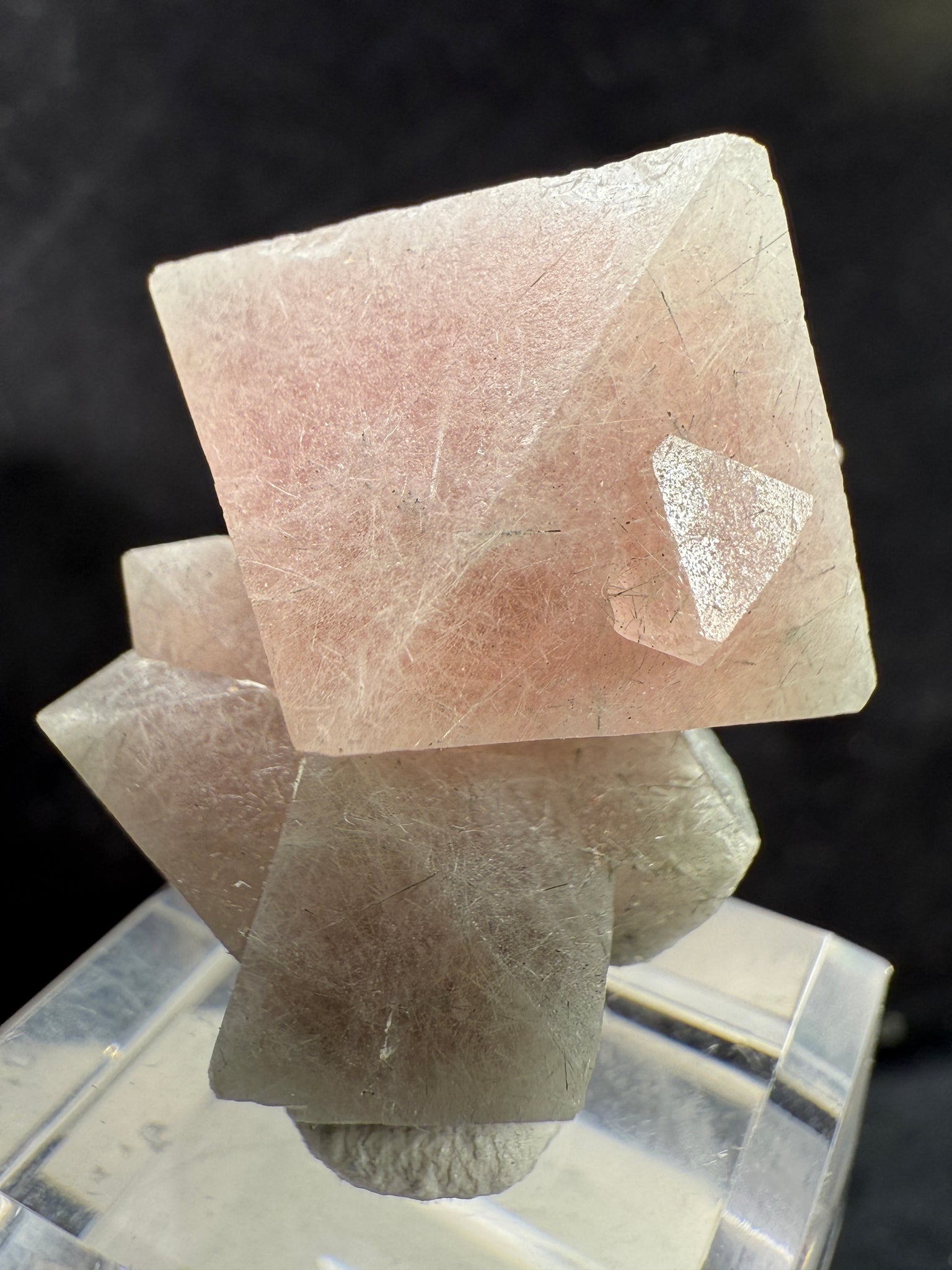 A fantastic cluster composed of eight well-formed pink Fluorite octahedrons. The specimen displays excellent crystal definition and overall condition. From the Huanggang Mine, Inner Mongolia, China. 3.2 x 2.8 x 2.7 cm