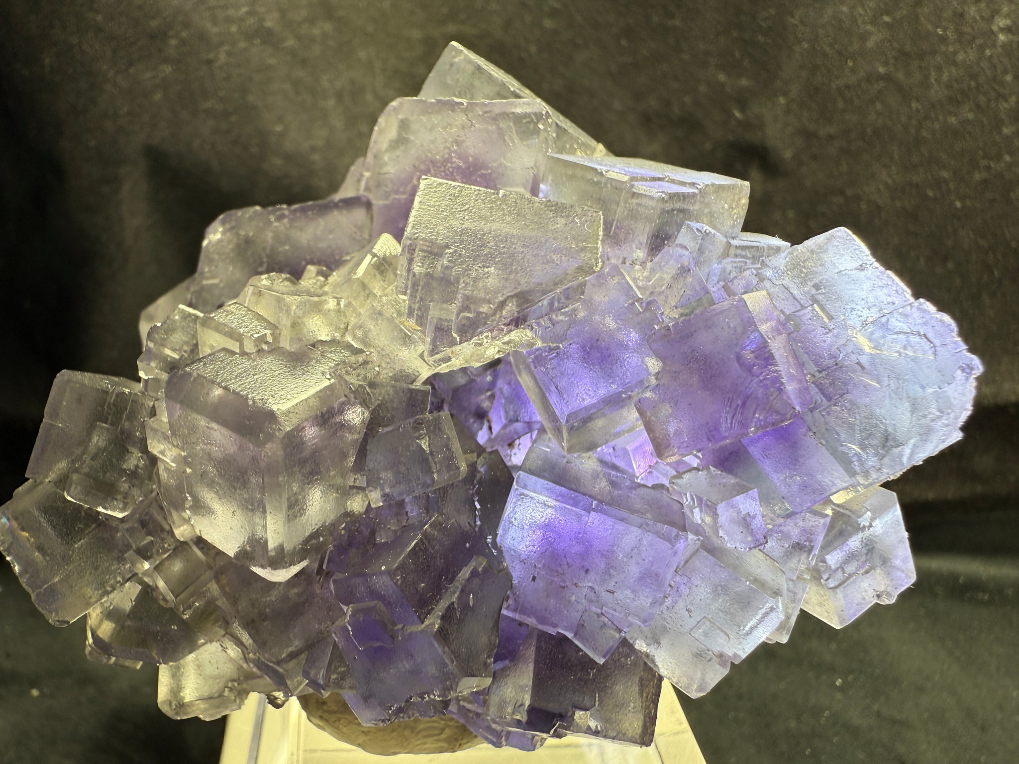 A stunning light purple Fluorite floater showing beautiful purple and blue zoning. This cluster is composed of multiple well-formed cubic crystals, including several on the back side. When illuminated from behind, the piece lights up beautifully — a perfect addition to any display. From the La Viesca Mine, Asturias, Spain. 8.5 x 7.6 x 5.8 cm