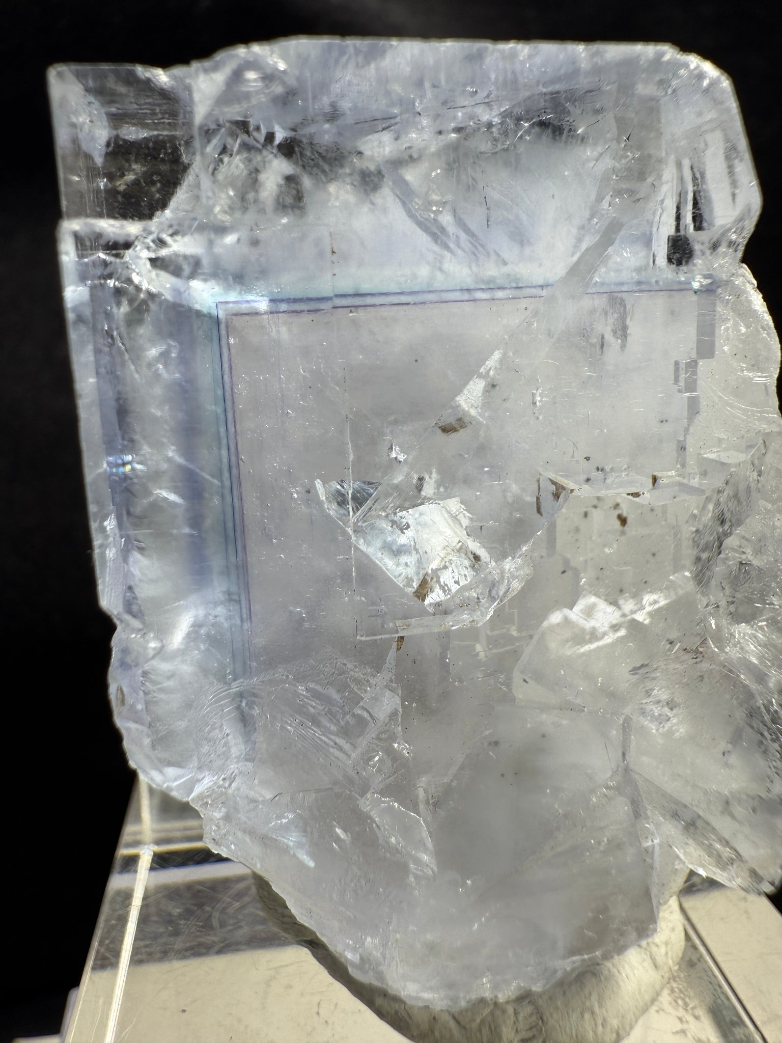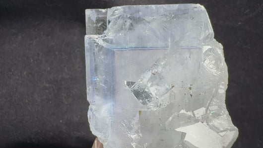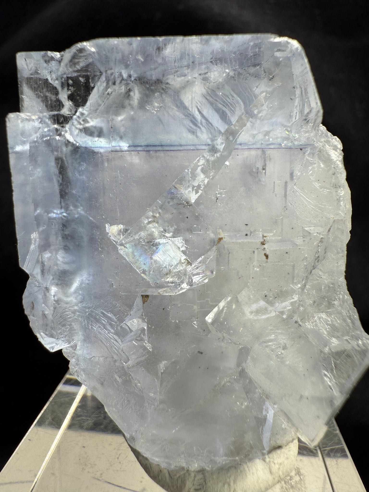 A showy, water-clear Fluorite with remarkable glassy luster and striking purple and blue zoning. The crystals are beautifully defined, displaying exceptional transparency and color contrast. Specimens of this quality are uncommon from the Emilio Mine, Asturias, Spain, making this a truly distinctive example for any collection. 5.2 x 4.2 x 4.0 cm