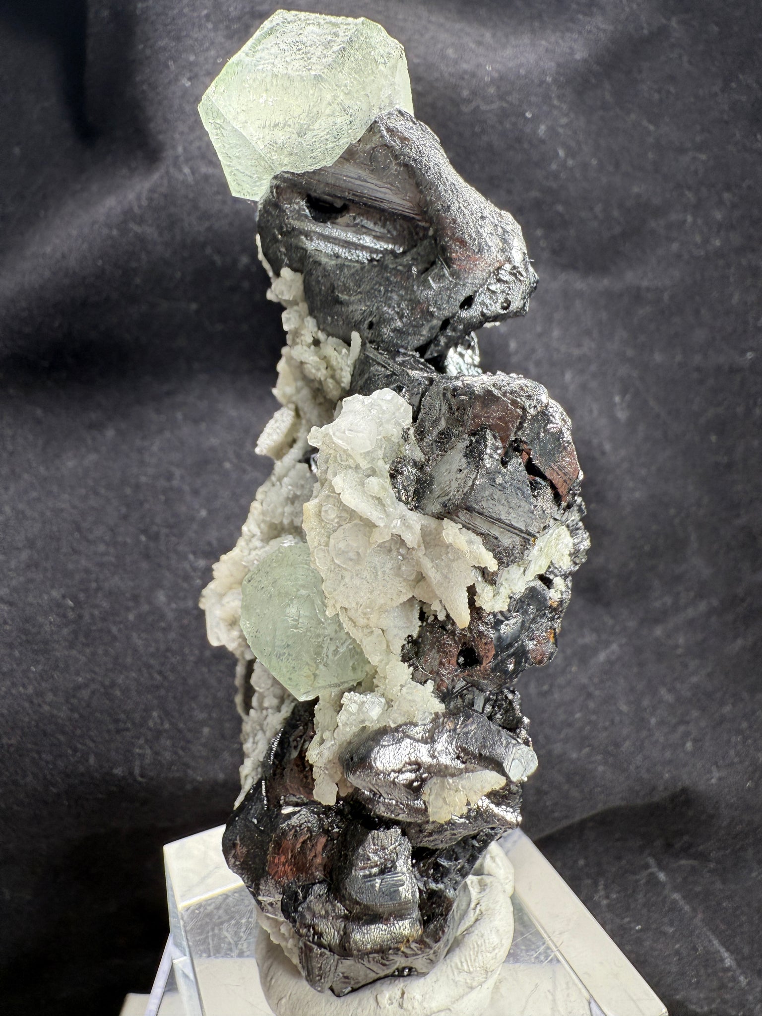 An aesthetic specimen featuring green, transparent, and well-terminated Fluorite crystals associated with lustrous Sphalerite and sparkling Quartz. This showy piece comes from the renowned Vtoroy Sovetskii Mine in Dal’negorsk, Russia a classic locality known for producing exceptional mineral combinations.