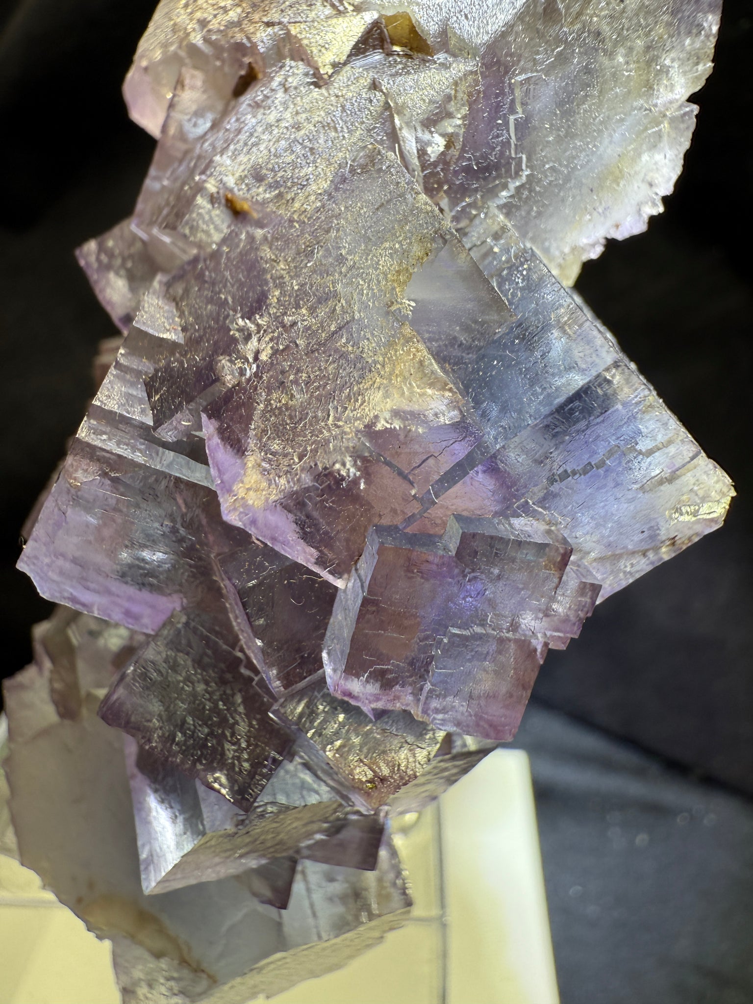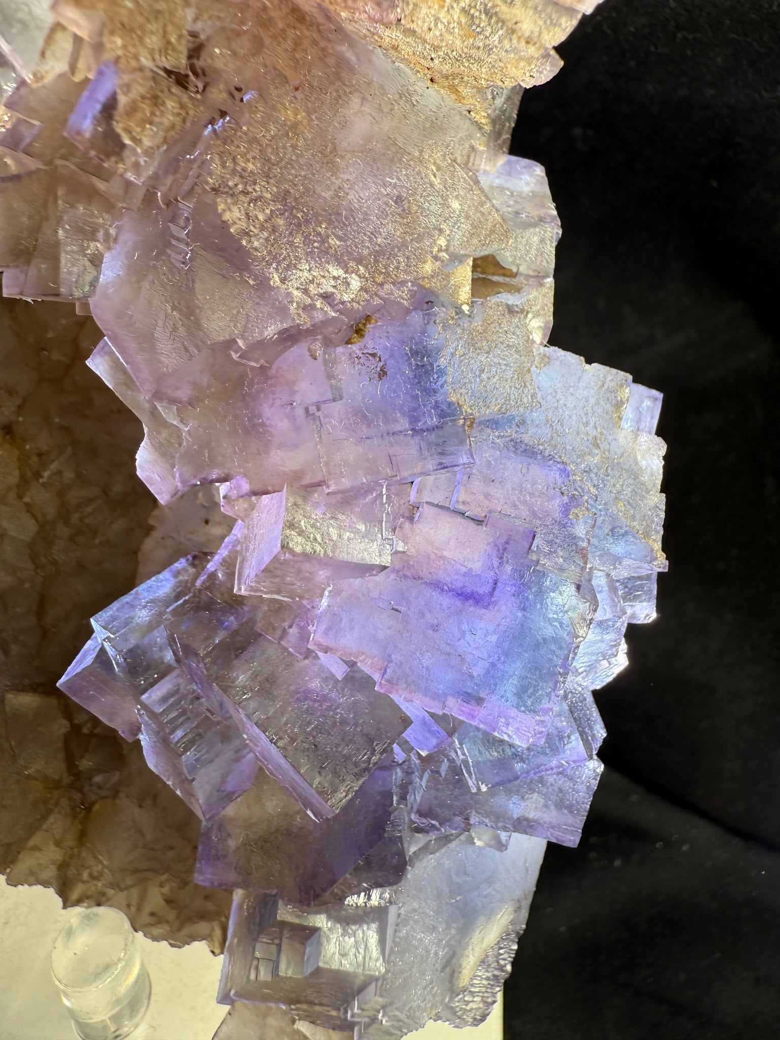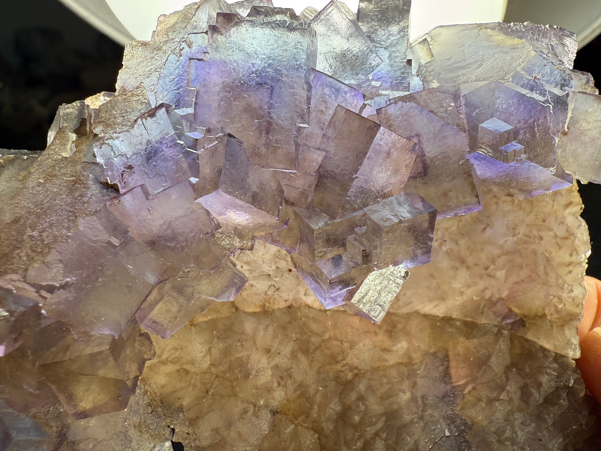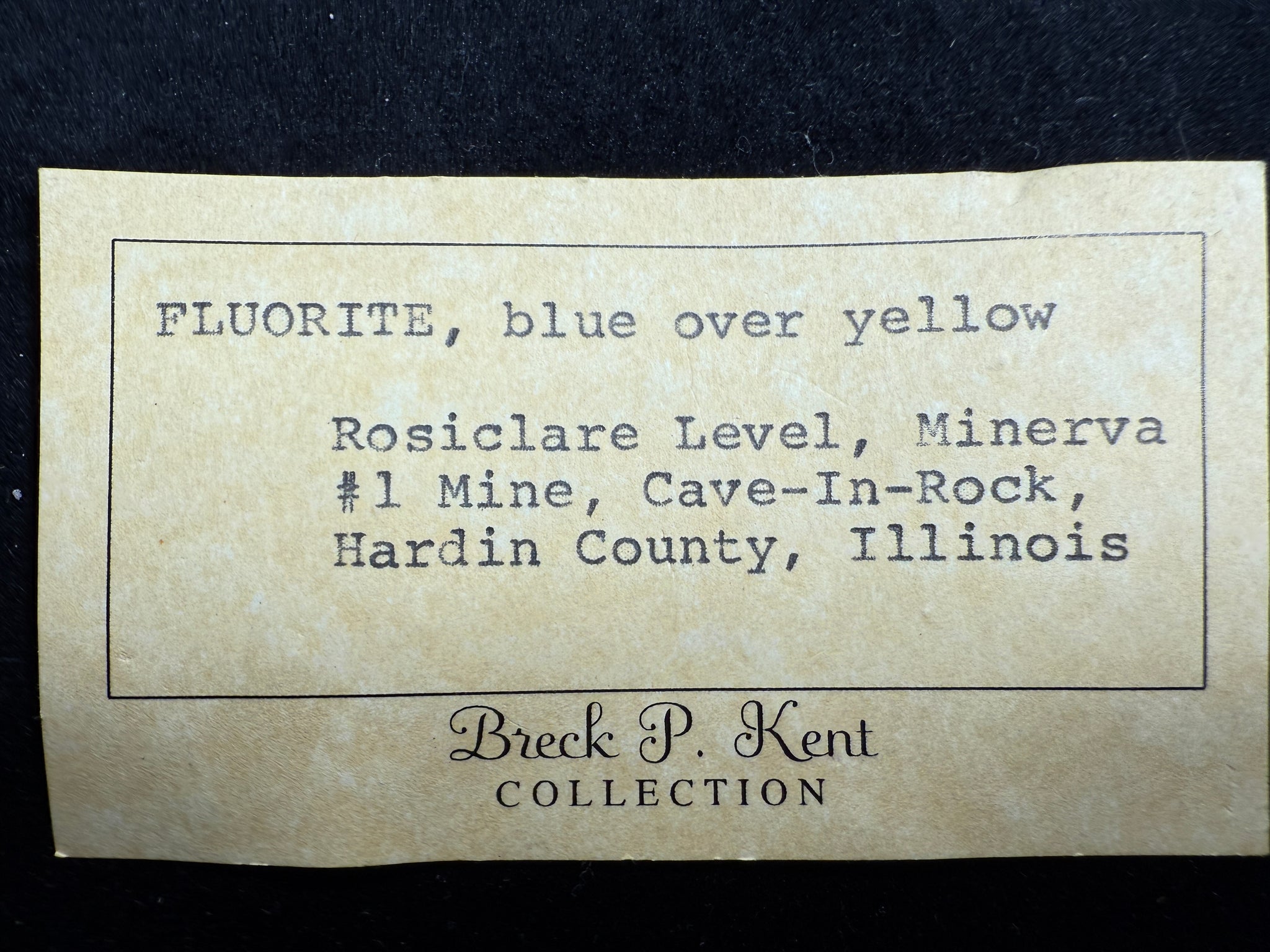 A stunning blue Fluorite over yellow with distinct purple zoning. Many of the sharp cubes display beautiful internal color zoning, and the piece is complete with no matrix on the back. When lit, the specimen glows brilliantly, revealing its vivid color zones. From the Rosiclare Level, Minerva #1 Mine, Cave-in-Rock, Hardin County, Illinois. 12 x 10.8 x 4.8 cm