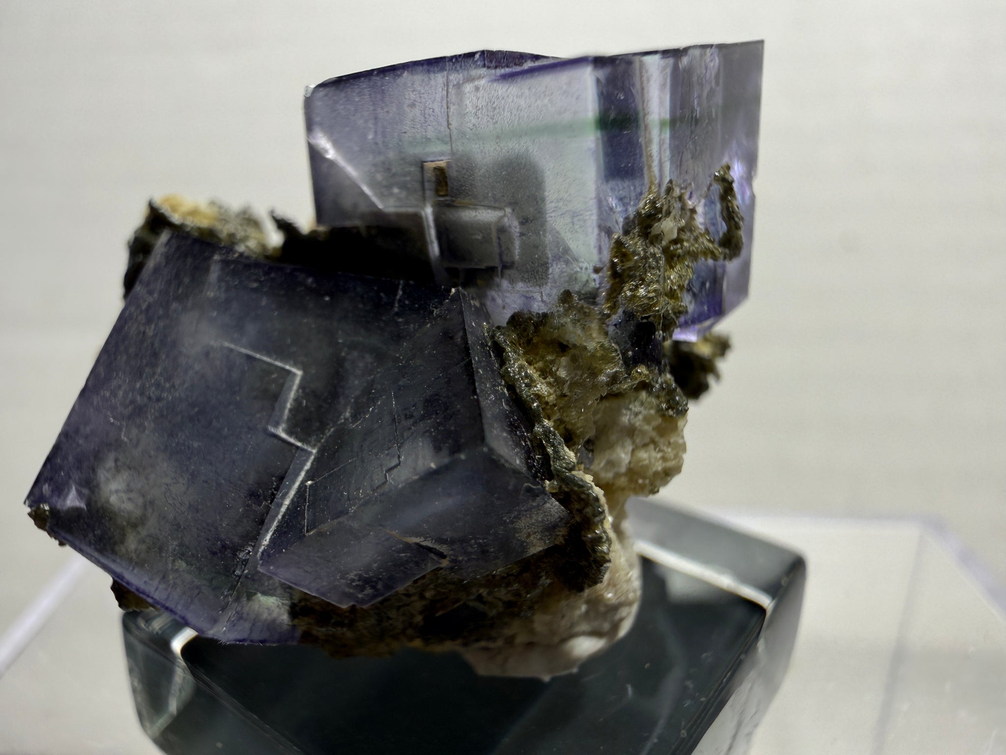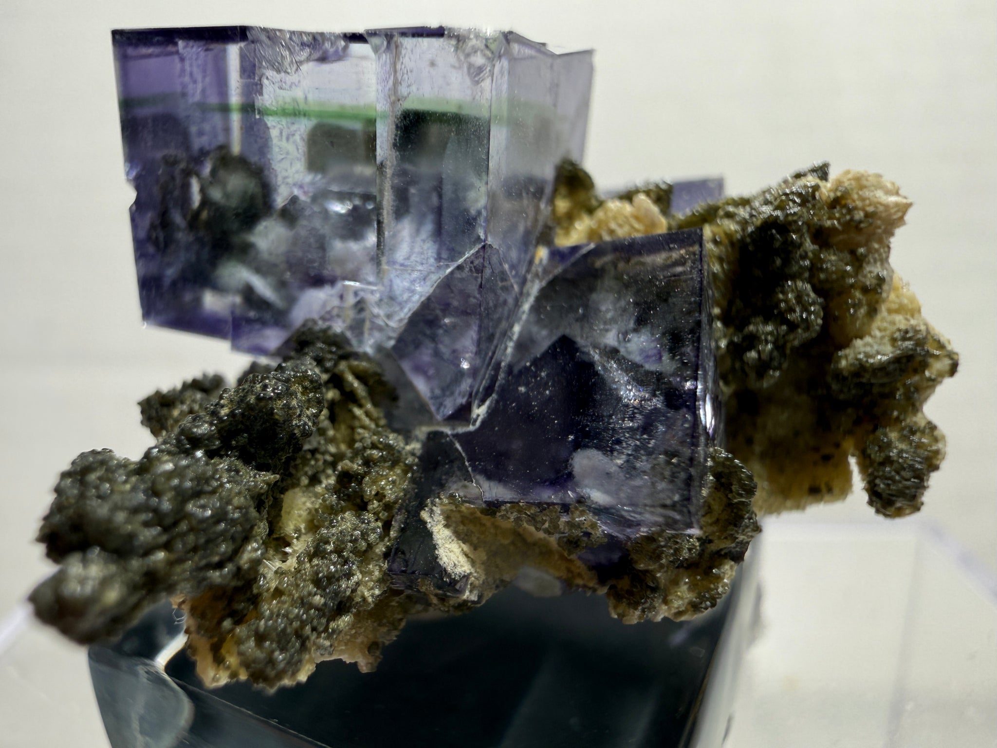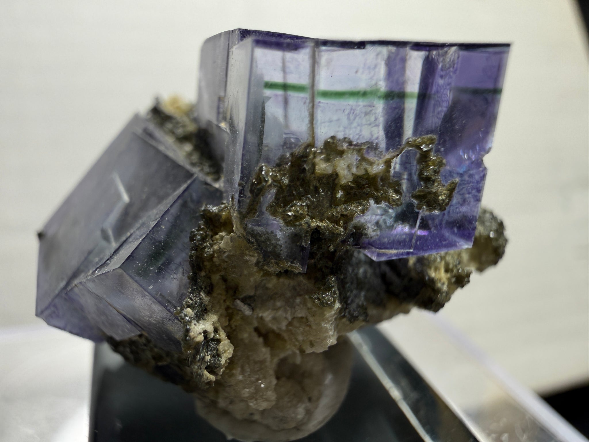 Transparent green zoned purple Fluorite from Yaogangxian mine, Hunan Province., China. 3.4 x 2.5 x 2.4 cm