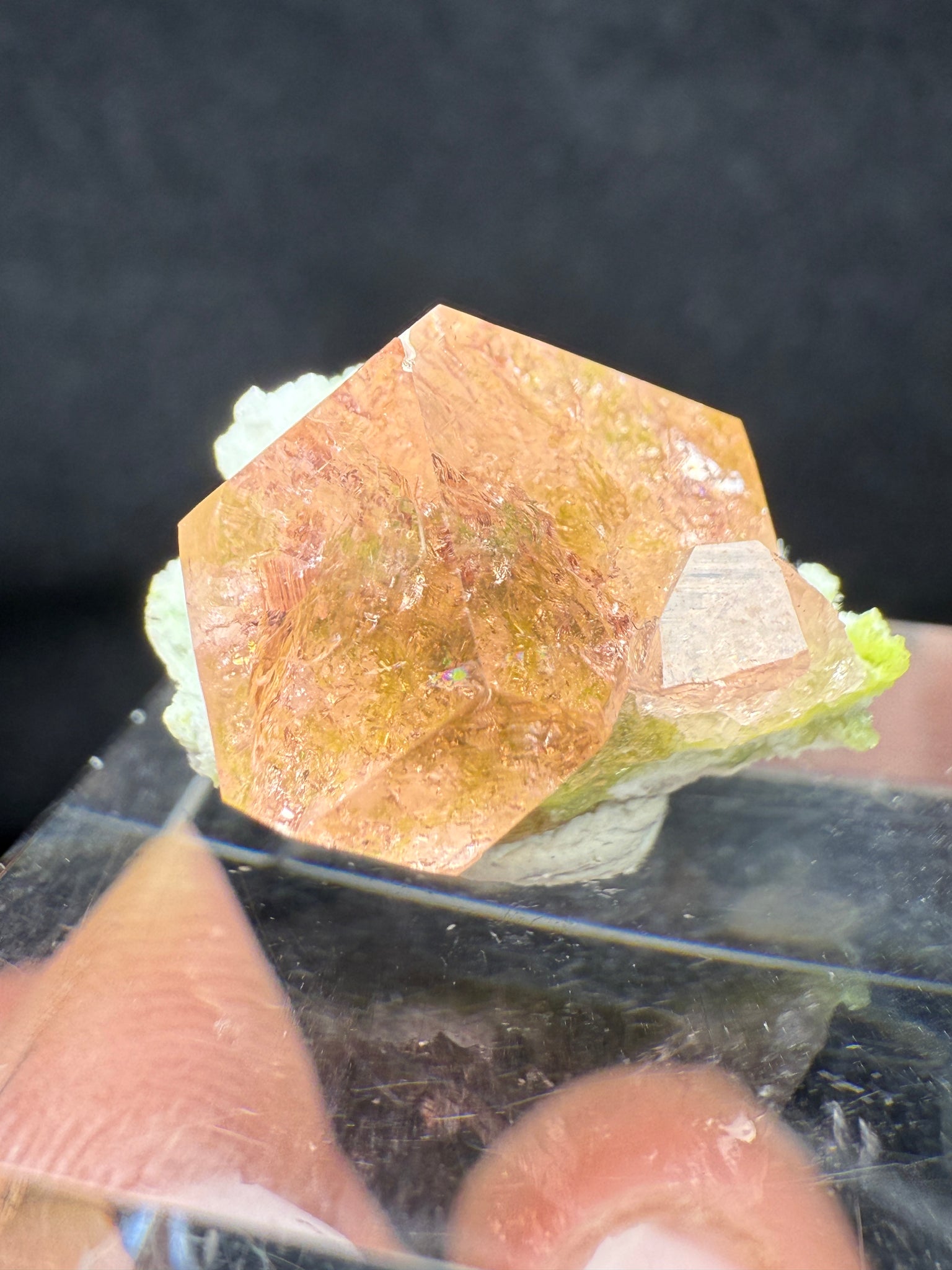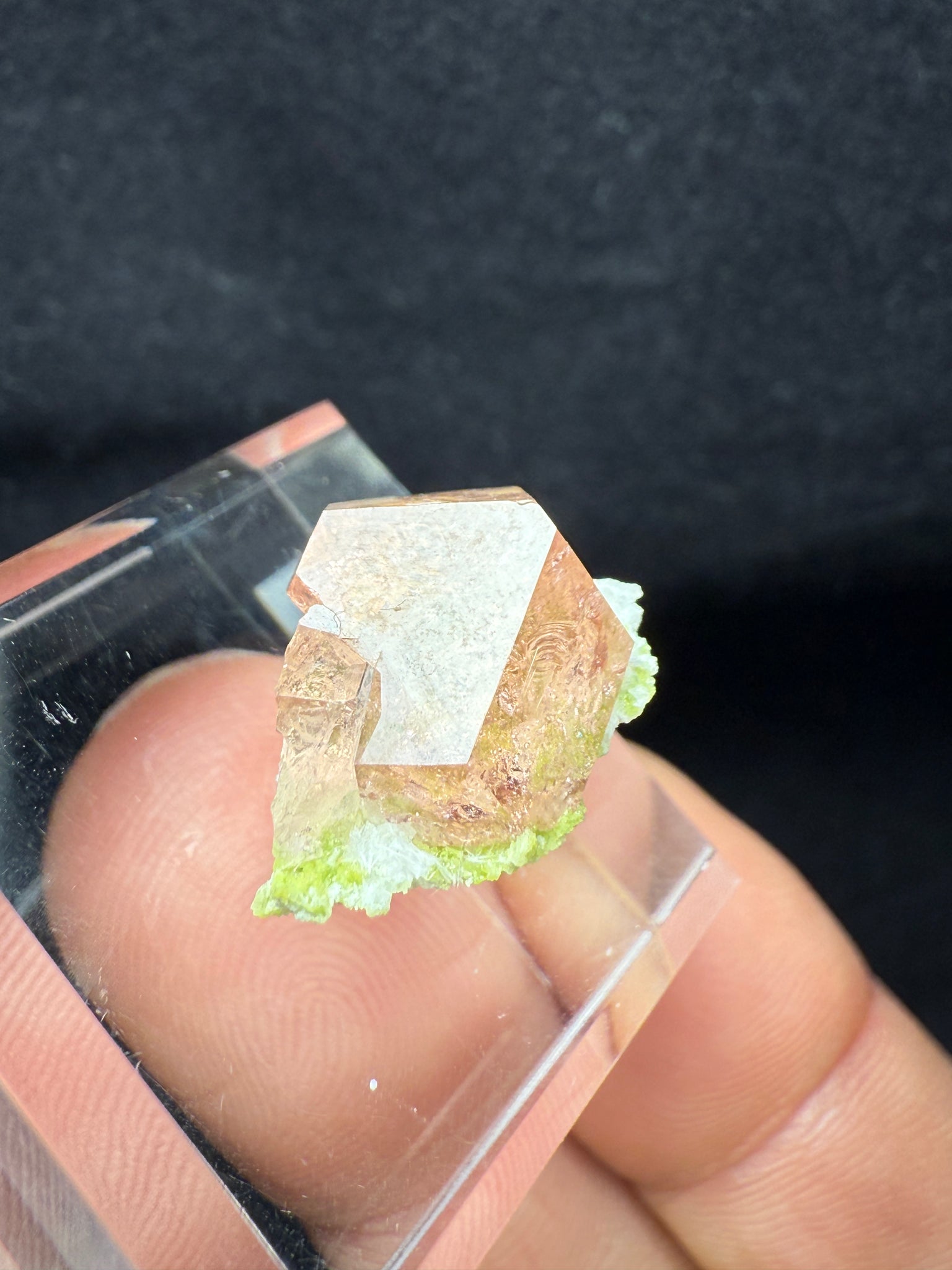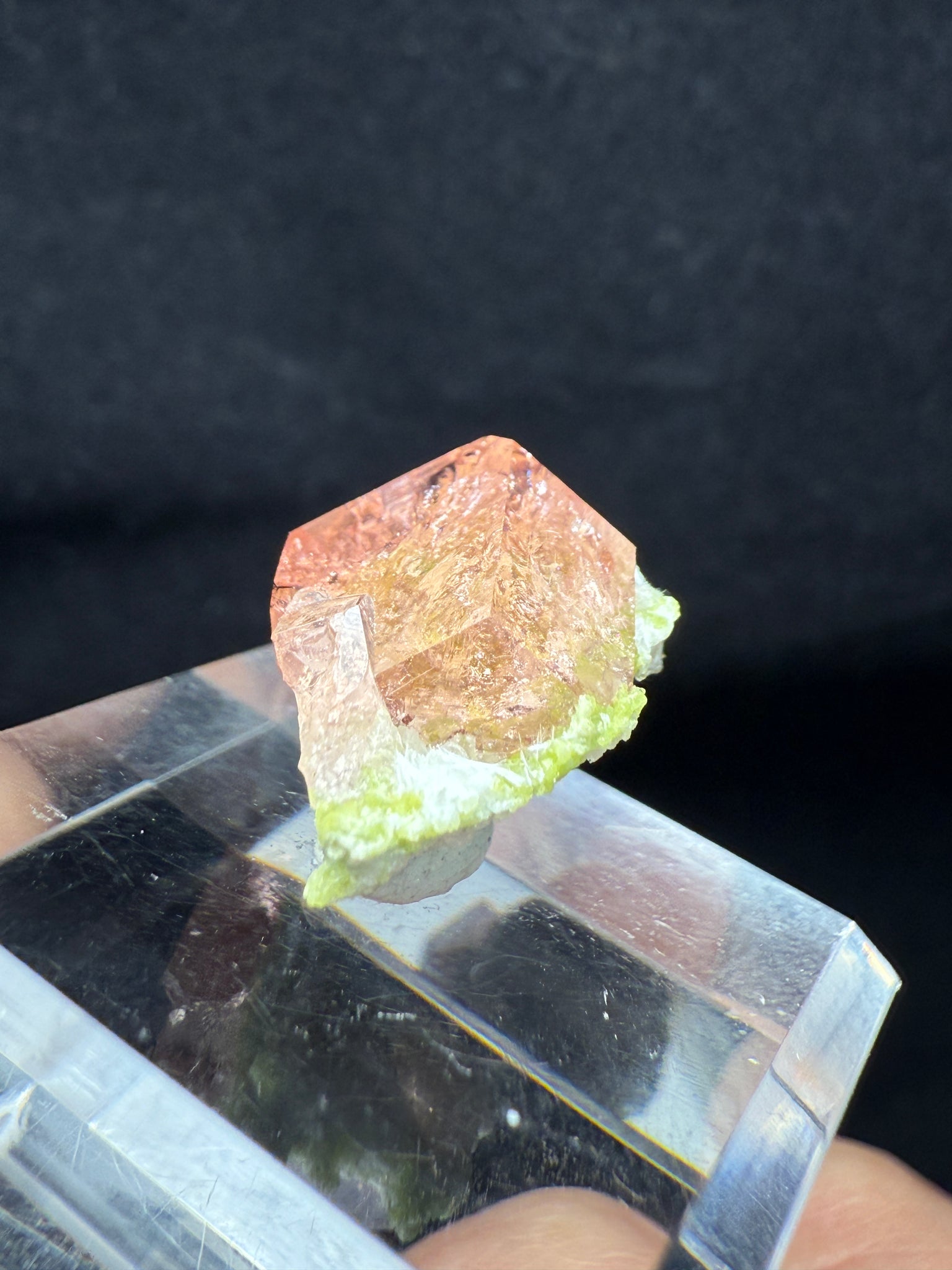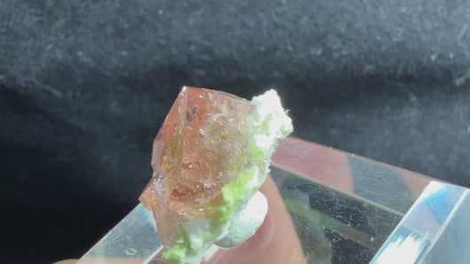 A truly stunning and rare pink garnet accompanied by vibrant diopside, sourced from the world-renowned Jeffrey Mine (Jeffrey Pit) in Val-d’Or, Quebec, Canada. This exceptional specimen showcases the natural beauty and unique color contrast between the deep pink garnet crystals and the rich green diopside, making it a standout piece for any mineral collection. Perfect for collectors seeking a rare and visually striking example from one of Canada’s most famous mining localities. 1.8 x 1.4 x 1.3 cm (garnet single crystal is 1.5cm)