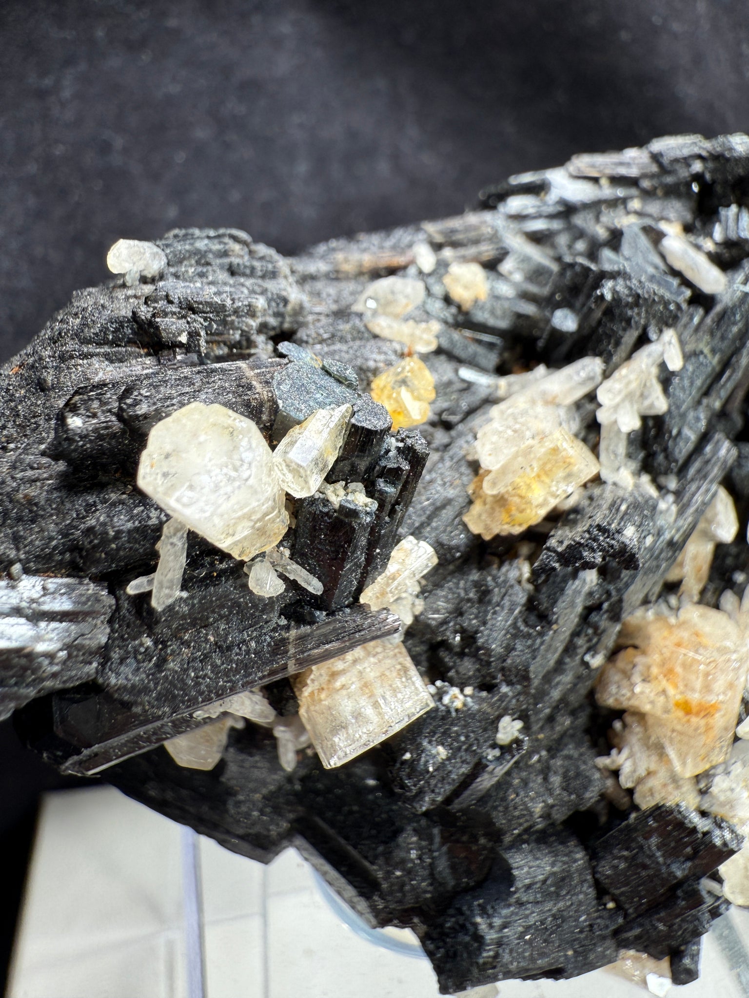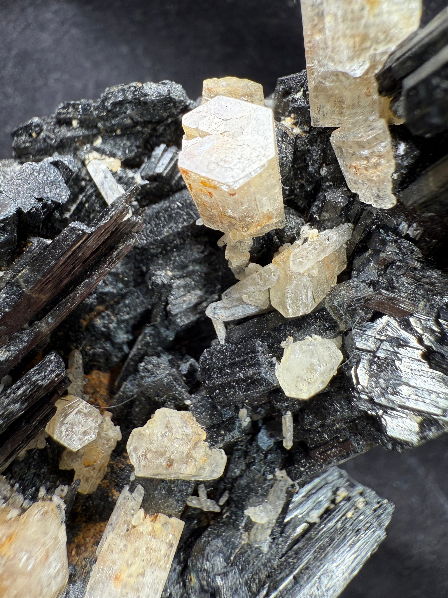 A wonderful specimen featuring well-formed Goshenite crystals, the colorless gem variety of Beryl, attractively associated with lustrous black Schorl Tourmaline and some Quartz. The contrast between the transparent Goshenite and the dark Tourmaline creates a striking visual balance, typical of the fine mineral associations from the Erongo Region, Namibia. A choice piece for collectors who appreciate classic pegmatitic combinations. 8.7 x 7.0 x 4.8 cm