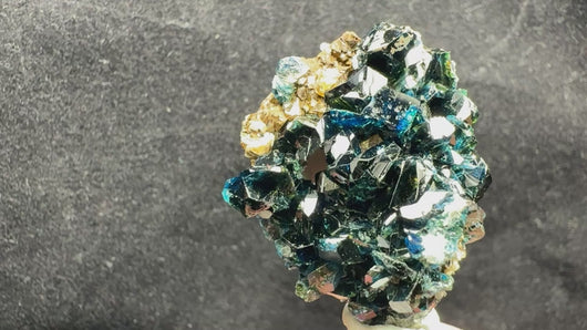 Glassy, deep night-sky blue Lazulite crystals with exceptional clarity, beautifully associated with Siderite and Quartz. A striking and gemmy specimen from the famous Rapid Creek locality, Yukon, Canada. 3.0 x 2.9 x 1.5 cm