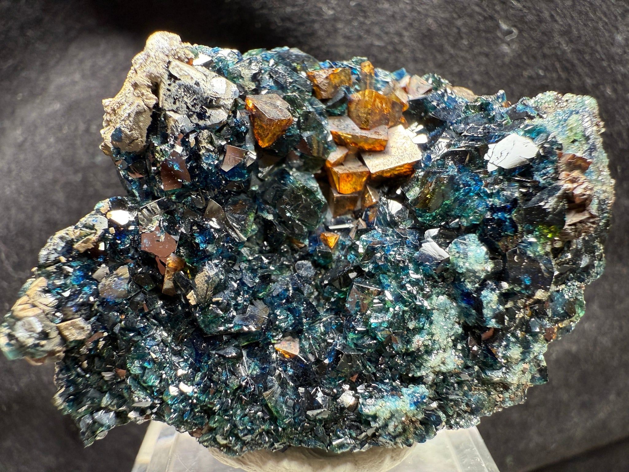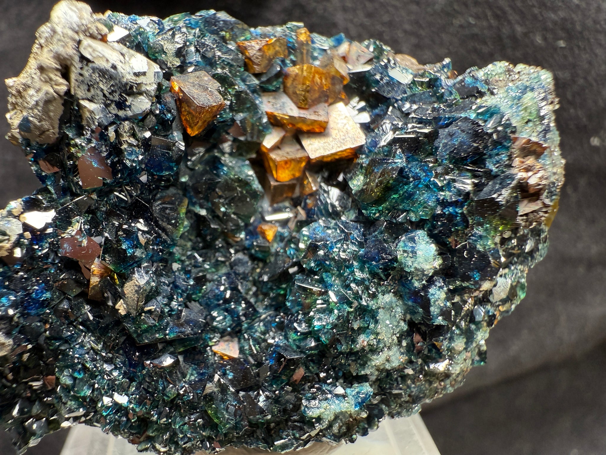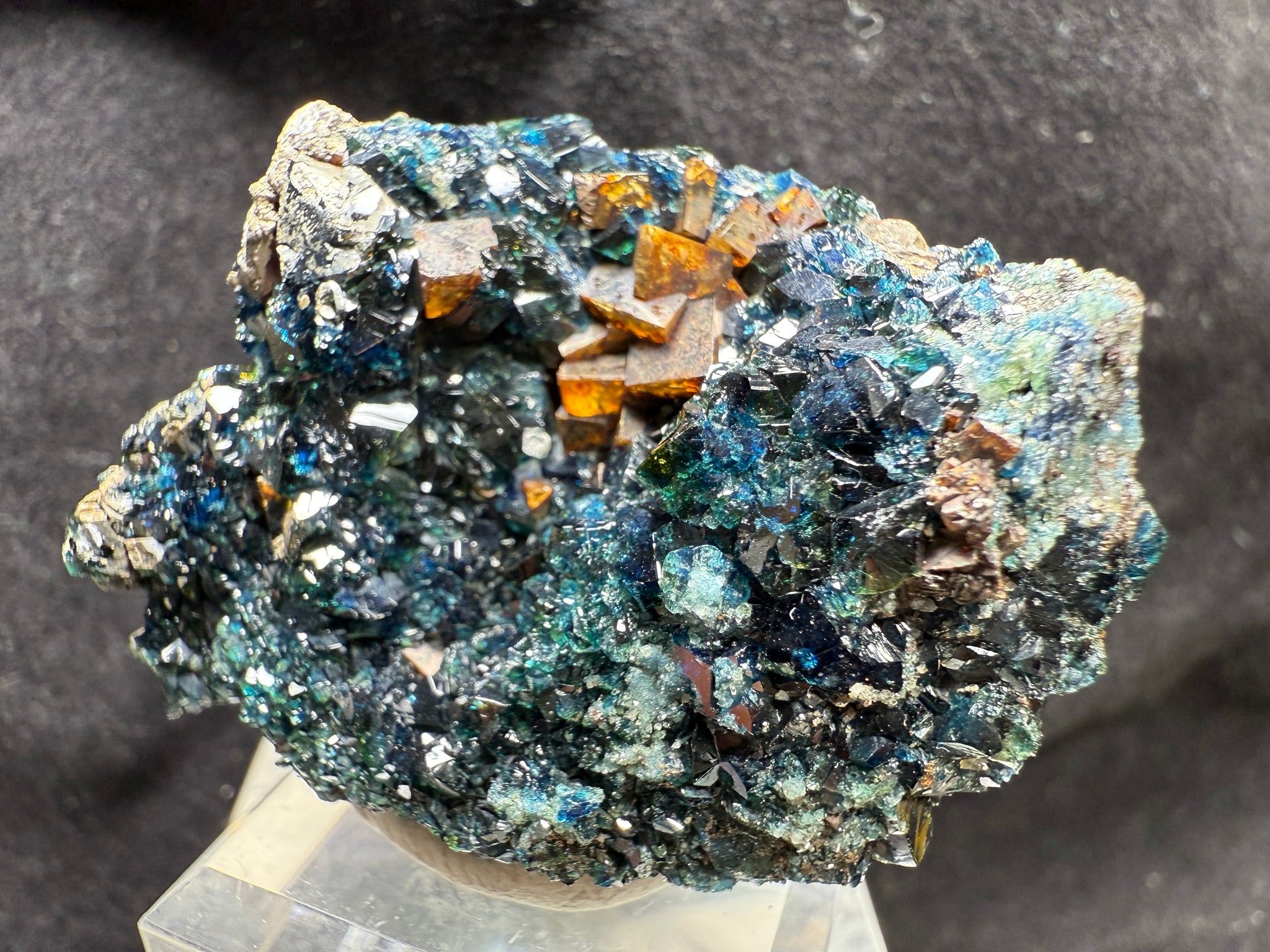 A gem brown Siderite associated with dark, deep blue Lazulite — a wonderful color combination with excellent crystallization. From Cross Cut Creek, Yukon, Canada.