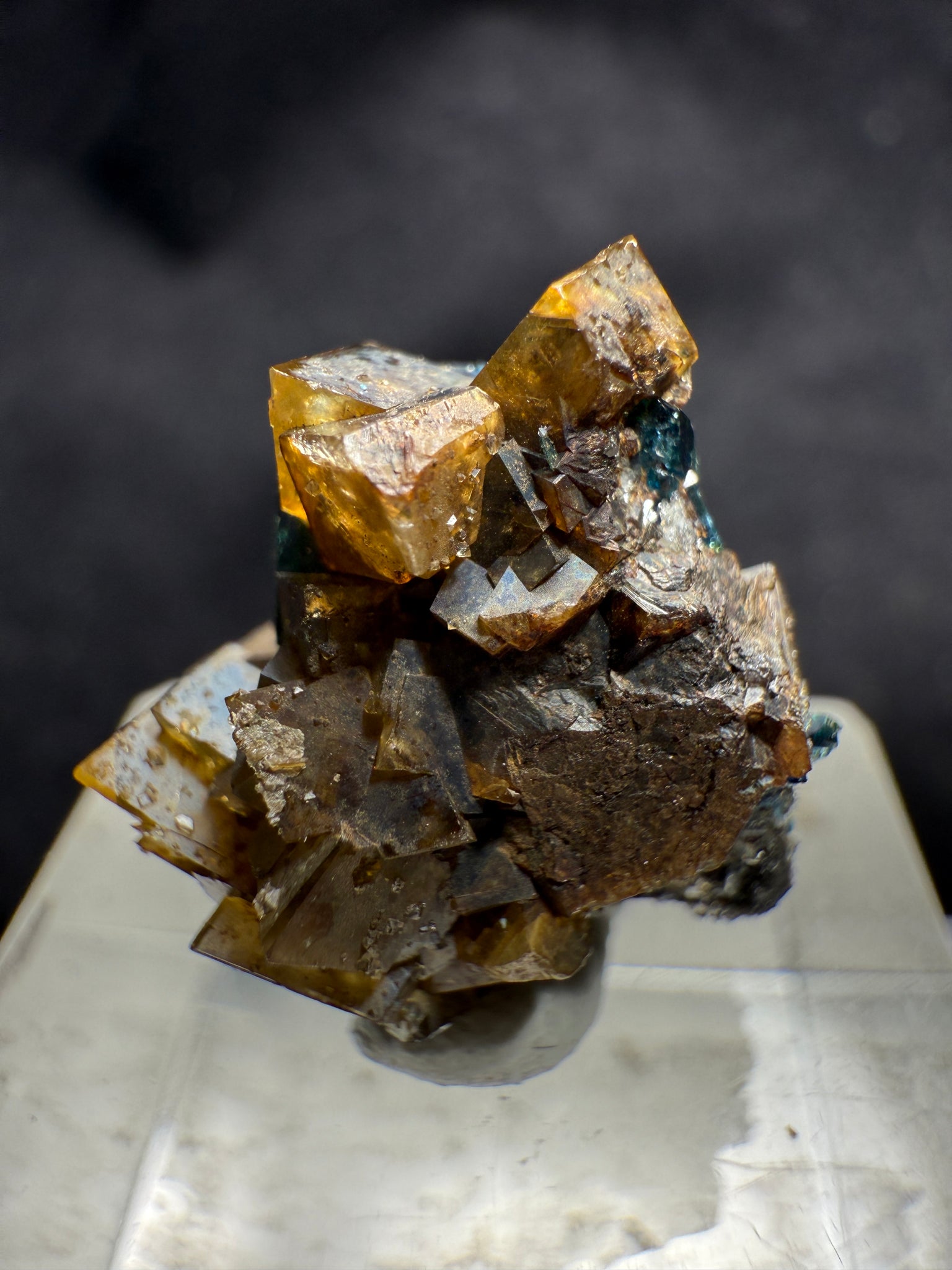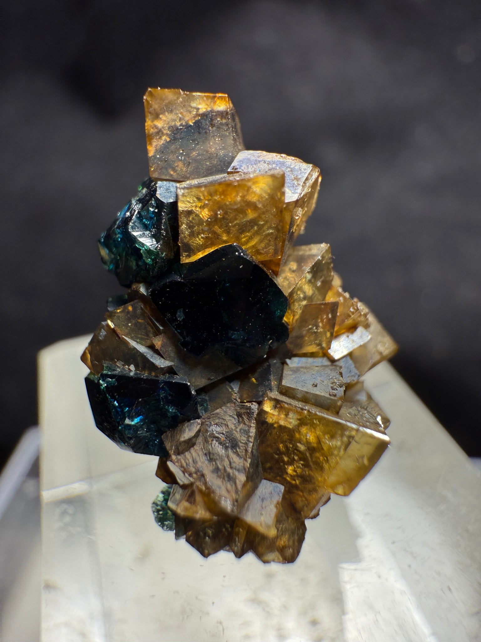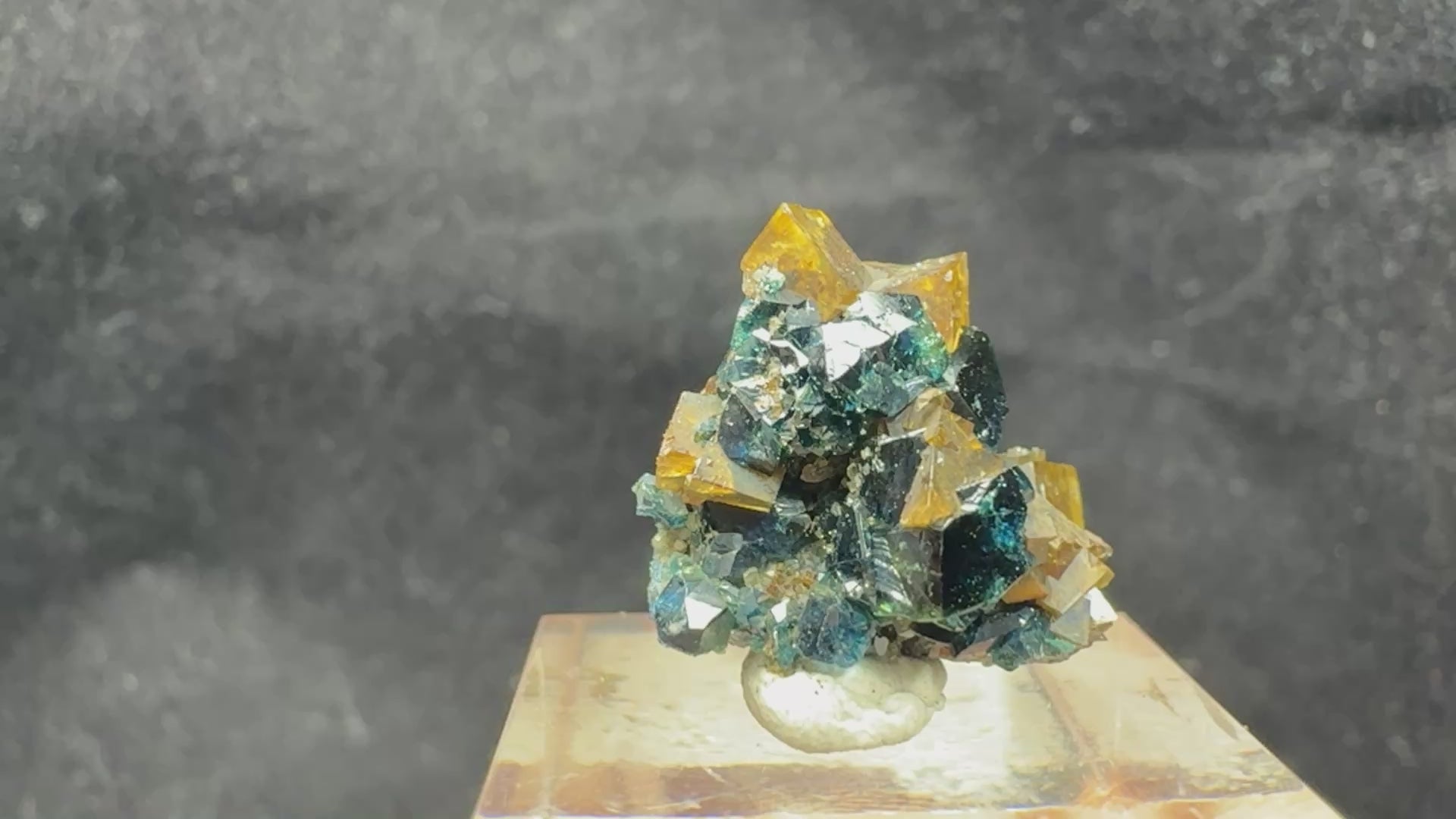 A striking composition of Lazulite and Siderite, showcasing superb color contrast and excellent crystal quality. The piece is equally beautiful from the back, revealing additional depth and balance in form and tone. 1.5 x 1.5 x 1.1 cm