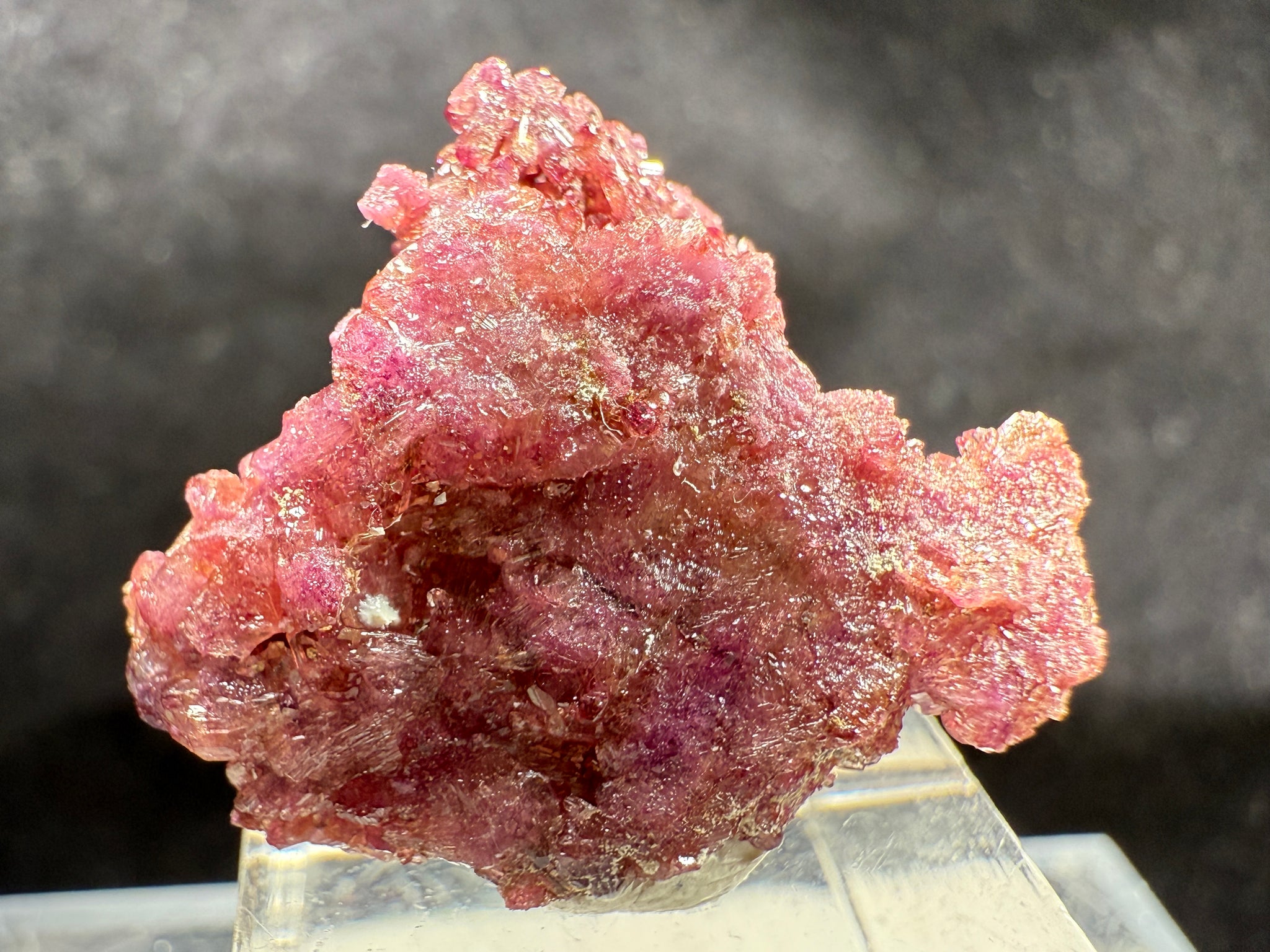A striking Vesuvianite crystal showing a mix of purple, magenta, orange, and reddish hues. The colors are rich and saturated, giving the piece remarkable visual depth. From the world-famous Jeffrey Mine, Quebec — a classic locality known for producing some of the most colorful Vesuvianites ever found. A superb and eye-catching specimen for any collection. 2.4 x 1.8 x 1.0 cm