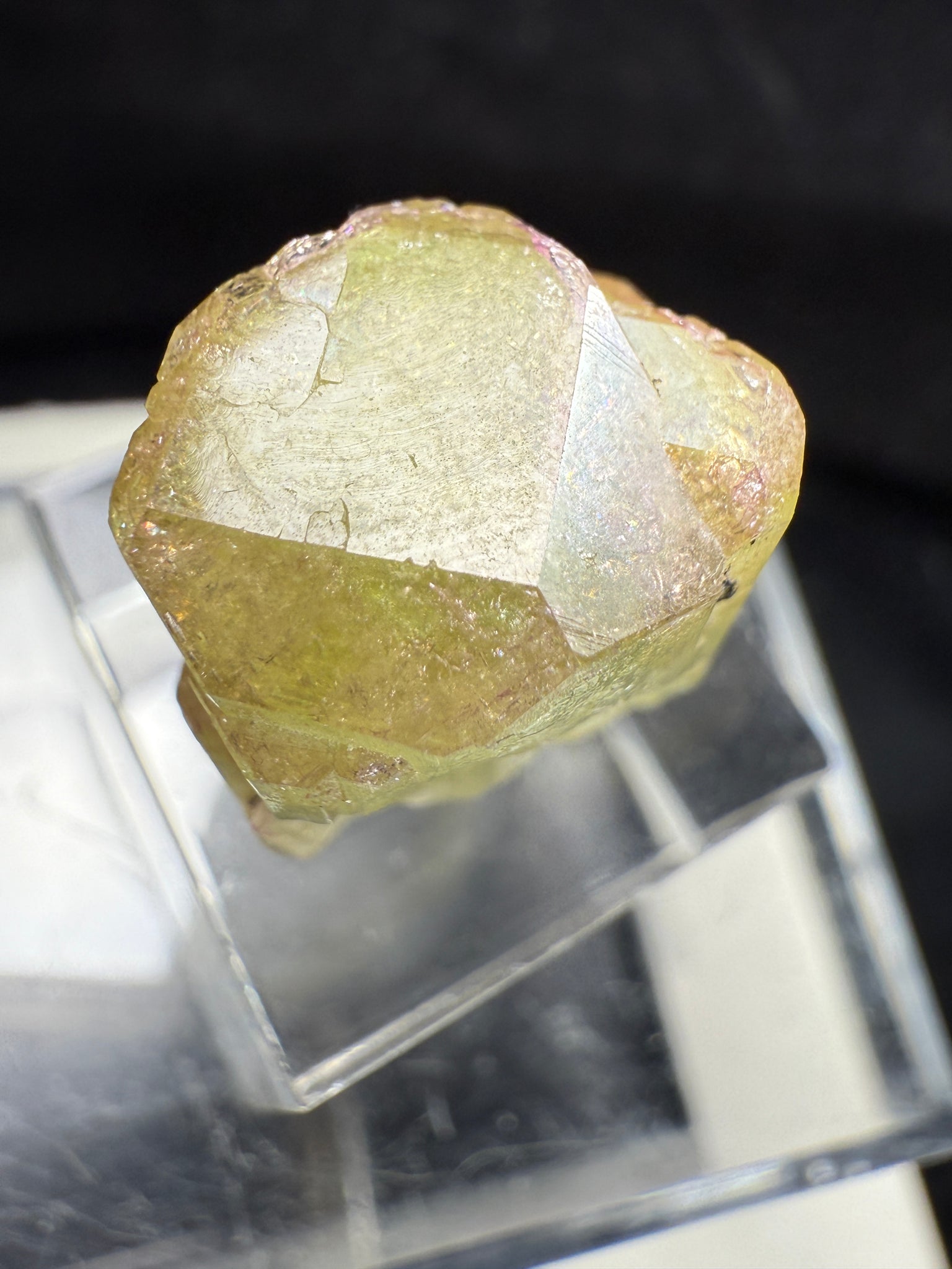 A well-formed Vesuvianite crystal with thick terminations showing a beautiful mix of green and soft pink hues toward the tips. The contrast of colors makes it a very attractive piece from the famous Jeffrey Mine Quebec — a classic locality known for its colorful and sharply terminated Vesuvianites.1.8 x 1.7 x 1.3 cm. There is a small defect but it doesn’t remove from its beauty.