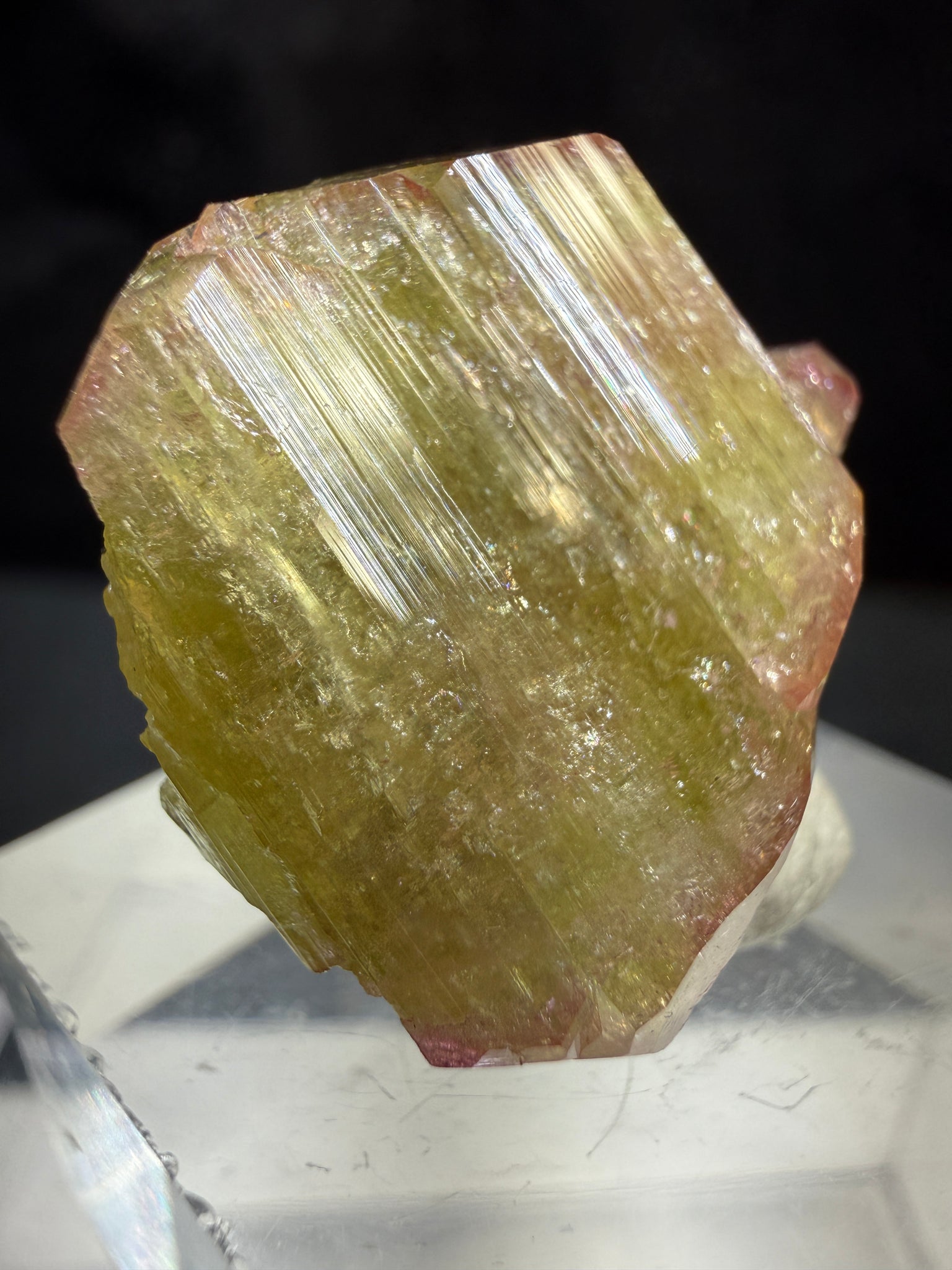 A superb glassy Vesuvianite green with pinkish tips, it shows great terminations and quite aesthetic. From Jeffrey mine, Val-Des-Sources, Quebec, Canada. 2.4 x 2.2 x 1.5 cm